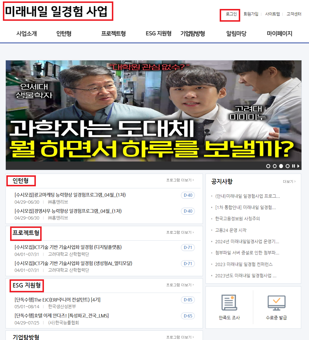 먼저 미래내일 일경험 사업 홈페이지로 접속합니다.